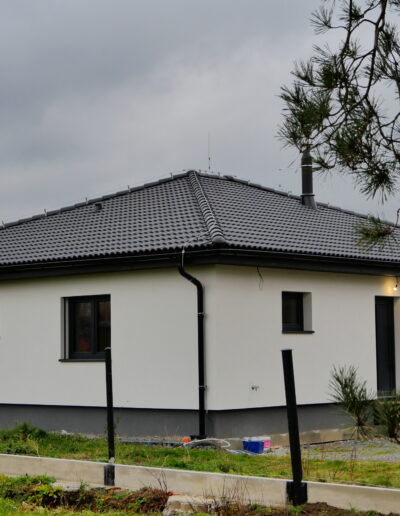 Tahle montovaná dřevostavba se nachází v nádherné krajině Podbeskydské pahorkatiny. Z obce je krásný výhled na Palkovické hůrky. Jedná se o náš typový projekt Bungalov 2B s klientskými změnami. Tento rodinný dům má dispozici 4+kk s bohatým příslušenstvím. Bungalov má na žádost investora menší krytou terasu. (Půdorys a pohledy – viz fotogalerie) Dům byl investorovi předán ve fázi Před dokončením, cca po 3 měsících od úvodní montáže.